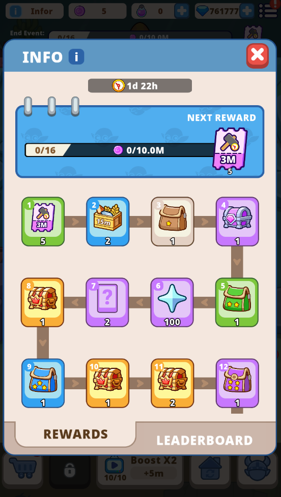 When the event begins, you will guide Goblin mermaids to deliver materials to make your palace even more grand. The event consists of 16 stages. Each time you reach a new stage, you will receive corresponding rewards.