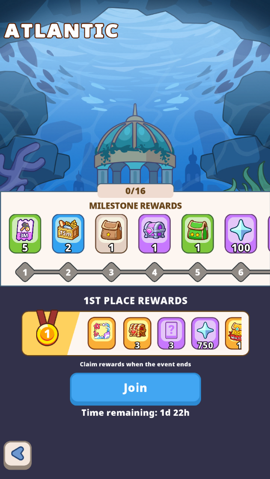 Explore the underwater city of Atlantic! Become a god ruling the ocean depths, where your mission is to command your people to produce resources and build a magnificent palace. Join now!