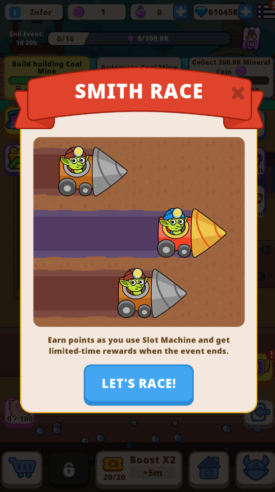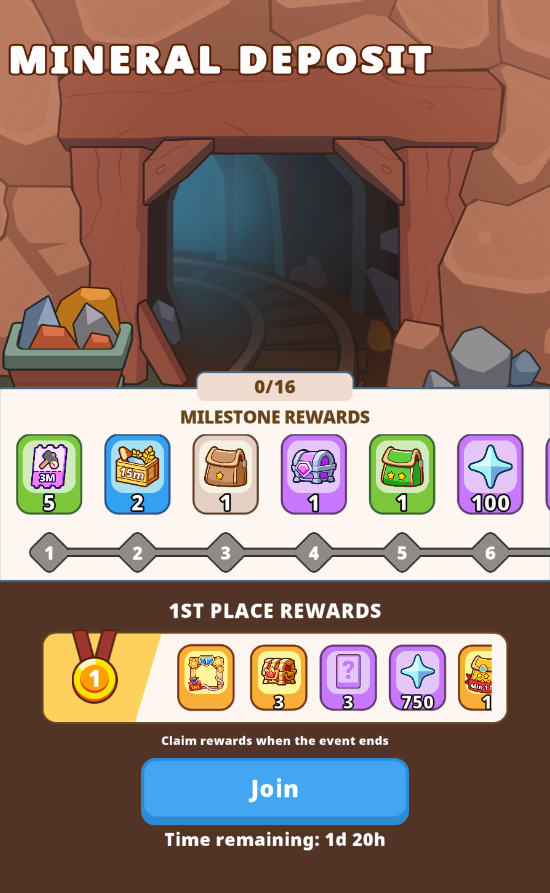 When the event starts, command your Goblin army to dig deeper into the earth in search of rare minerals. The event features 16 exciting stages, each unlocking thrilling rewards as you progress. How deep can you go?