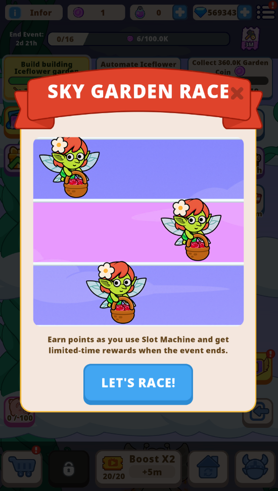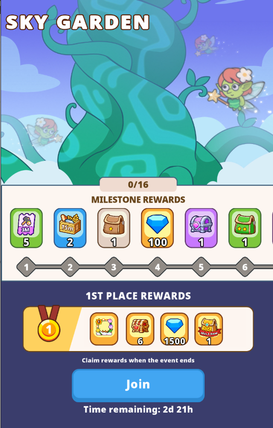 When the event begins, you will lead your Goblin fairies to care for and harvest beautiful, rare flowers. The event features 16 exciting stages, each unlocking attractive rewards as you progress. Can you reach the highest cloud level?