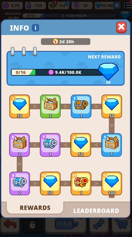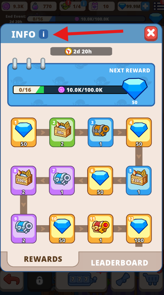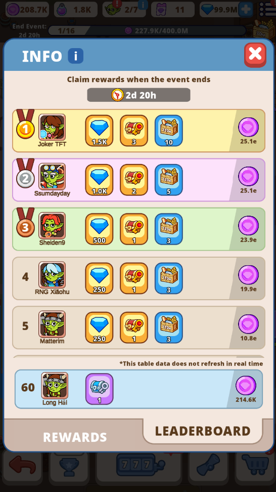 At the bottom of the screen, you’ll find the leaderboard, where you can track your ranking against other players. Aim for Top 1 to earn top-tier prizes!